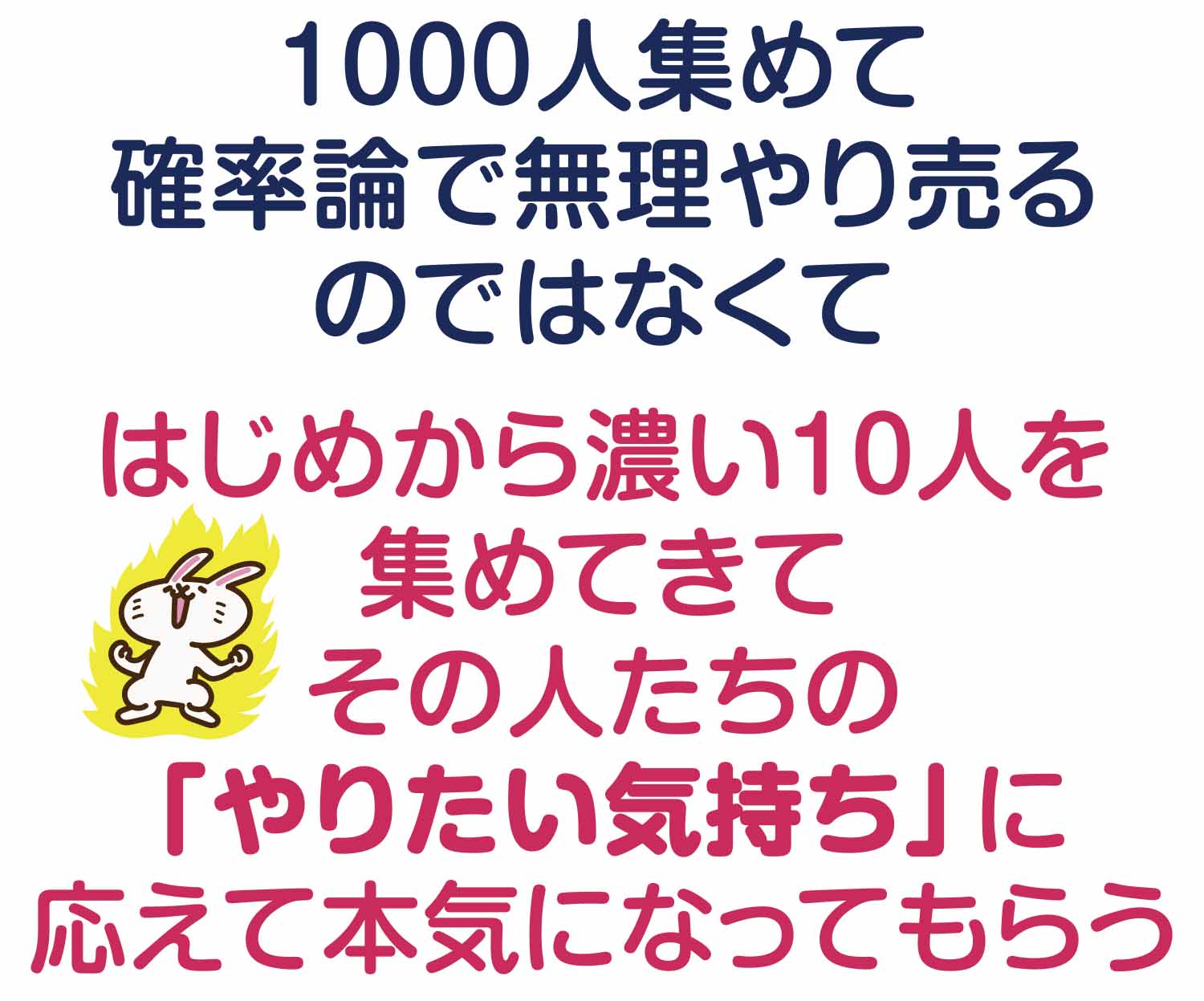 私は、9年間、自分自身の、そしてクライアントさんのビジネスをこの1/10戦略で跳ねさせてきましたが、9年間ネット広告での集客だけでビジネスを成り立たせてきました。 最近ようやくyoutubeを始めたんですが、再生回数、全然回りません(笑)でもビジネスはちゃんと成り立っています。 たくさんの人を集めなくても個人でも広告を使って、本気の人を集めてその方々のやる気に火をつけることで、大きな売り上げを出すことは可能なんだということをお伝えしたくて日々、活動しています。